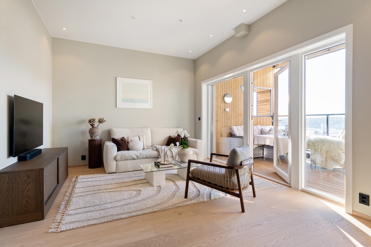 Nuevo apartamento de 3 habitaciones en el corazón de Larvik con balcón y vistas