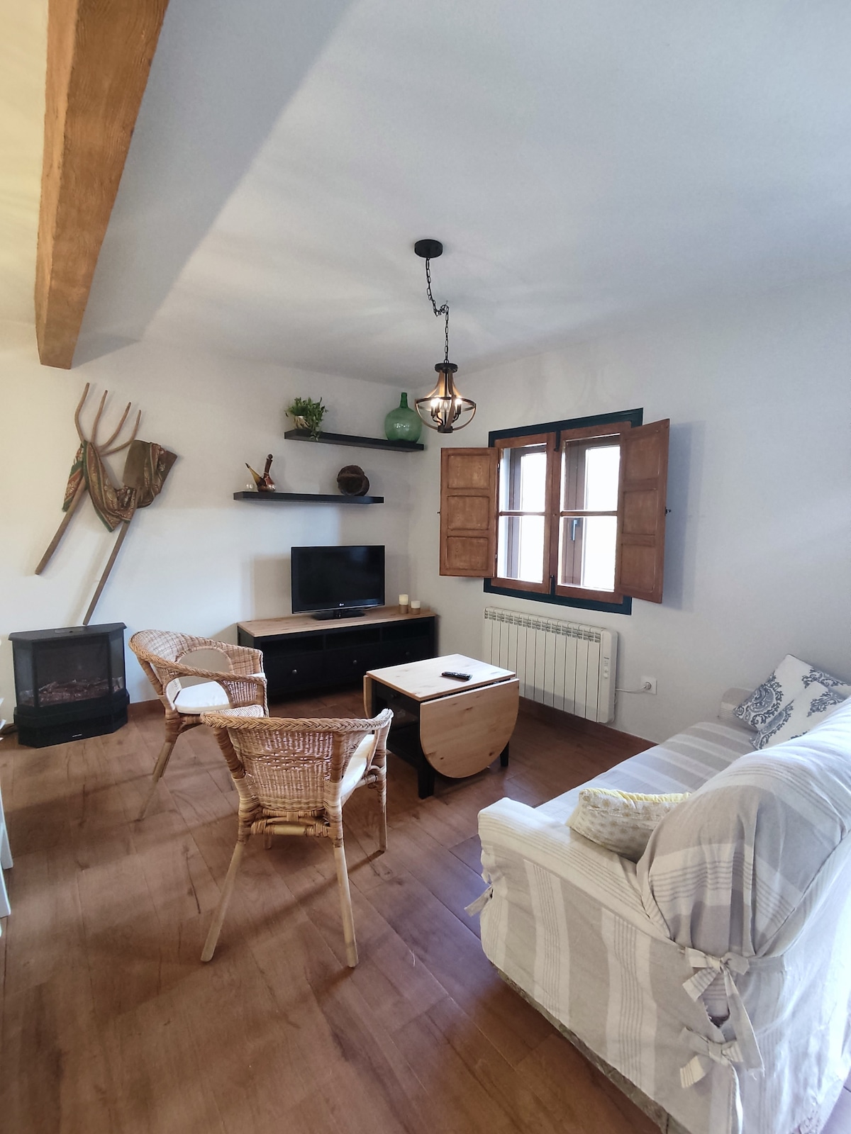 Apartamento rural para dos personas y posibilidad de cama supletoria para 4 huéspedes ,muy céntrico , situado en el casco urbano y cerca de La PLaza , espectaculares vistas del pueblo y la sierra , muy luminoso. Tiene todas las comodidades y el menaje necesario de cocina incluida lavadora, para escapadas de fin de semana o semanas completas, amplia cama confortable de 150 cms de ancho ,donde ver la smart tv de 43 pulgadas por si no quisieras visitar todo lo que te ofrece el valle del Tiétar.