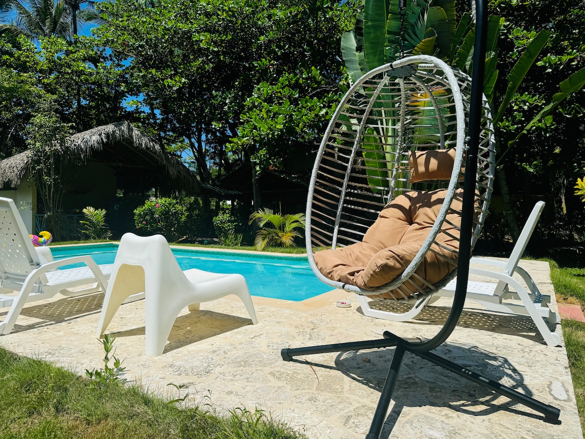 Nuestra villa es familiar. Ubicado en El Portillo, Las Terrenas, República Dominicana. Acceso directo y privado a la playa. 2000 metros cuadrados de zona verde llena de hierba verde y suave. >Zona de la piscina >Zona de barbacoa >Comedor al aire libre >Nuestro dormitorio principal está diseñado para huéspedes con discapacidad física. 1 minuto a pie de la playa A 10 minutos del centro del pueblo. A 20 minutos de la atracción turística: las cascadas de Limón.