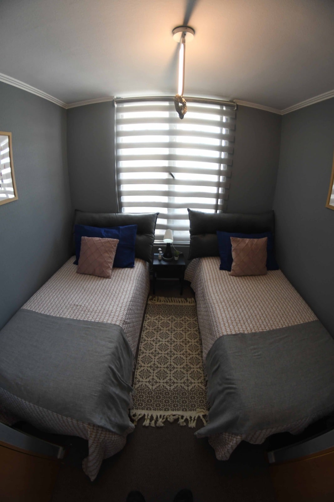 Disfruta de la sencillez de este alojamiento céntrico y tranquilo. equipado con Internet Fibra 940 MB, Tv Cable, Aire Acondicionado y Lavadora. Televisión en Living y Dormitorio Principal. APP de entretención PRIME VIDEO, HBO MAX, PARAMOUNT SIN ESTACIONAMIENTO PROPIO, Solo de visitas por 4 horas. Se ofrece estacionamiento de pago en la propiedad por $6.000 por noche SE RECUERDA QUE LA HORA DE INGRESO ES DESDE LAS 15:00 Y RETIRO HASTA LAS 12:00 SI NECESITA SE EMITE BOLETA O FACTURA