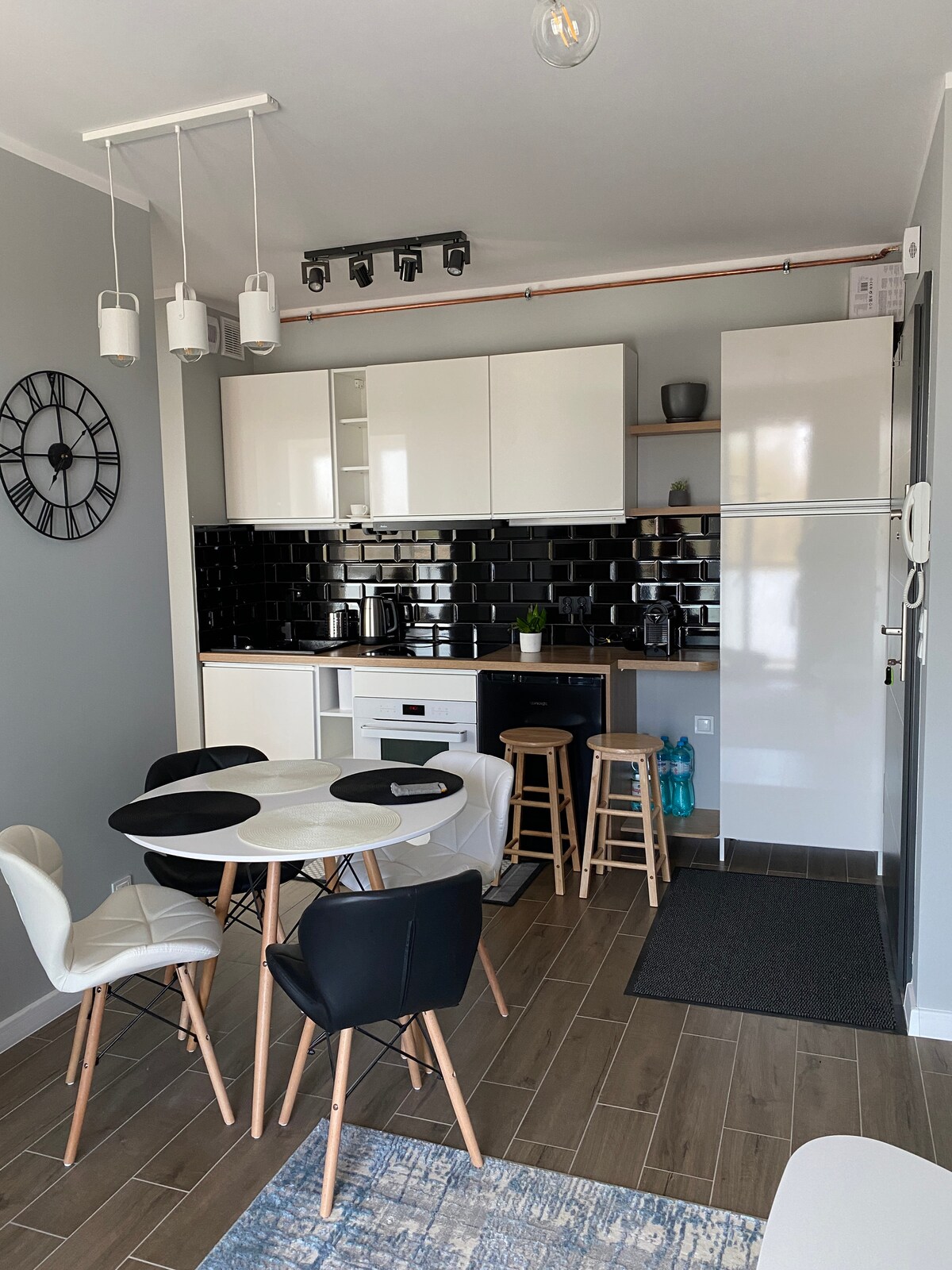 Bienvenido a Perla, nuestro apartamento junto al mar en Let 's Sea Gąski, a solo unos pasos de la playa. - Interior inspirado en detalles marinos para un ambiente relajante. - Ideal para escapadas románticas o vacaciones familiares. - Las comodidades incluyen un área de SPA con piscina, jacuzzi, sauna, gimnasio y cancha de tenis. - Balcón con vistas al mar. - Cocina totalmente equipada con electrodomésticos modernos - Wifi rápido y aire acondicionado con purificación de aire. - Capacidad para alojar cómodamente hasta 4 huéspedes.