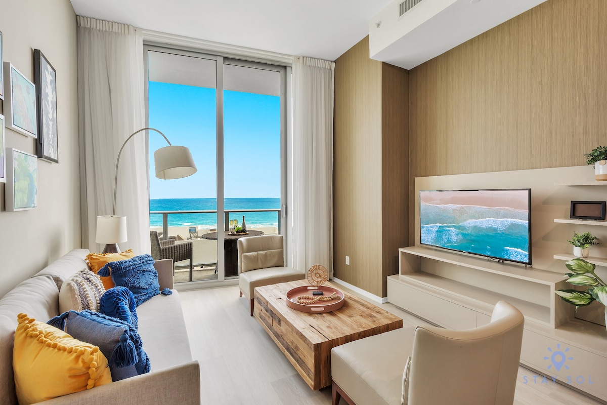 Disfrute del glamour de esta elegante residencia de lujo ubicada en Hallandale/Hollywood. Hospédese en nuestro depto privado de 2 dorm y 2 baños mientras disfruta del estilo de vida y las comodidades que ofrece el hotel. Disfrute de lo mejor de ambos mundos. La hermosa torre de lujo se eleva sobre el horizonte de Hollywood Beach con vistas al océano y está ubicada justo en la playa. Camine hasta la playa. Muchas opciones de restaurantes y tiendas a 3 minutos en automóvil o 15 minutos a pie.