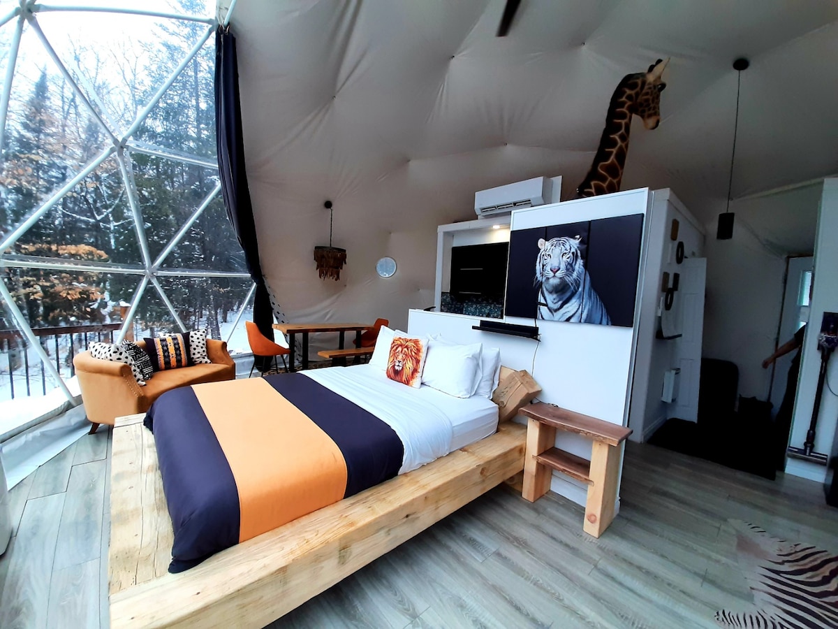 Domaine Rivière-Rouge Dome SAFARi con spa. Frente al agua, wifi, kayaks, paddel board y chalupa incluidos. Spa abierto durante todo el año, fuego exterior traiga su leña. Safari le ofrece una experiencia única en América del Norte. La cúpula SAFARI 4 Estaciones un lugar que no te puedes perder. Nuestro sitio ofrece la oportunidad de vivir una experiencia de lujo en perfecta simbiosis con la naturaleza y el entorno. Situado a 25 de Mont Tremblant. No se admiten mascotas.