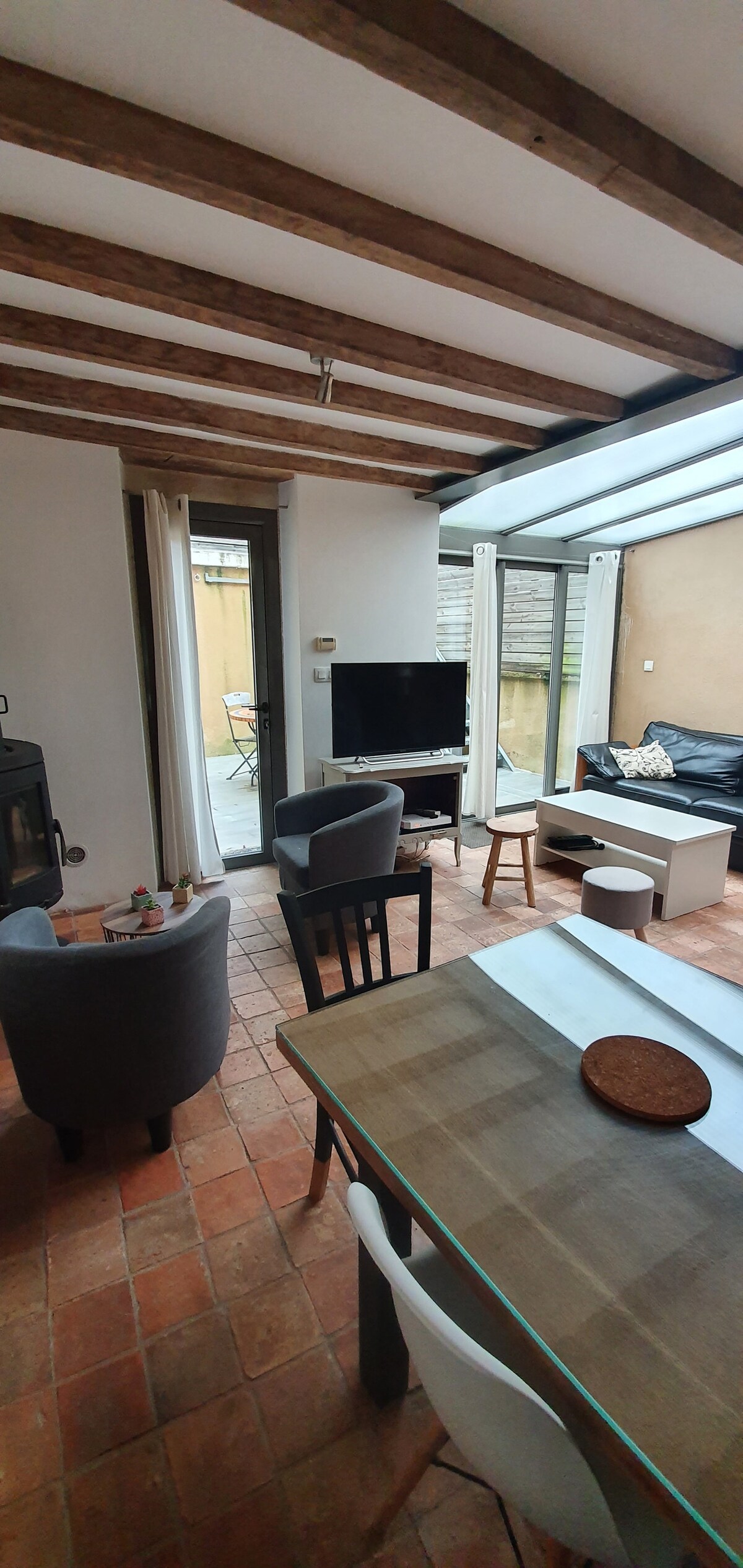 Jolie maison atypique au cœur de Château-Gontier pouvant accueillir jusqu'à 6 personnes. Elle dispose d'une agréable pièce de vie lumineuse, une cuisine fonctionnelle toute équipée ainsi que 3 chambres dont 2 avec un lit double et une autre sous les combles avec 2 lits simples pour accueillir les plus jeunes. Aux beaux jours, vous pourrez profiter d'une terrasse surmontée d'un balcon avec 2 transats ainsi qu'une table et des chaises.