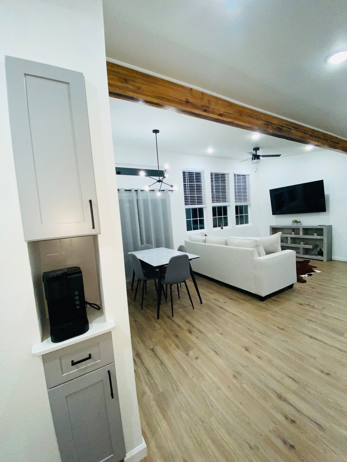 No hay mejor manera de experimentar la belleza de Rockwall que durmiendo justo en el corazón de la misma. Explora las vibrantes calles del centro llenas de boutiques, tiendas vintage y cafés con encanto o disfruta del sol en el lago pescando. «Blue Moon» es la casa perfecta de la década de 1950 para relajarse después de un día lleno de diversión o trabajar lejos de casa. Sea lo que sea que te traiga a Rockwall, trabajo, familia o diversión, esta joya oculta es tu hogar lejos de casa. ¡Prepárate para disfrutar de las comodidades de la gran ciudad con el encanto del casco antiguo!
