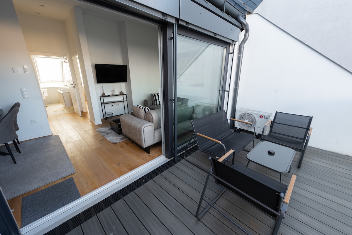 Entra en la comodidad de tu elegante apartamento en la azotea bañado por el sol, con excelentes instalaciones en el centro de Viena. A solo unos pasos de la vibrante Radetzkyplatz y del río Danubio, el apartamento promete un refugio urbano, a poca distancia a pie de los mejores restaurantes, tiendas, atracciones y lugares de interés de la ciudad. ¡La auténtica vida vienesa en todo su esplendor! Cama tamaño✔ king + sofá cama Sala ✔ de estar de planta abierta. Cocina ✔ Totalmente Equipada Balcón ✔ privado. ✔ Smart TV Wifi de✔ alta velocidad ✔ Aire acondicionado Más información ↓