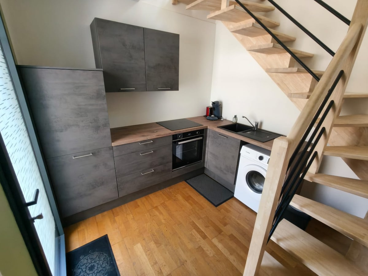 Estudio nuevo amueblado con cuidado en una casa de huéspedes totalmente renovada, y totalmente independiente con un jardín privado, sin vecinos, para una estancia tranquila, rodeado de vegetación. Descubra el Cellier, con vistas al Loira, el castillo de Clermont (residencia de Louis de Funès), las Folies Siffait, el viñedo de Nantes, magníficas vistas y paseos muy bonitos, a pie, en bicicleta o incluso en barco. ¡Aproveche al máximo esta burbuja fuera del tiempo para recargar las pilas y desconectar!