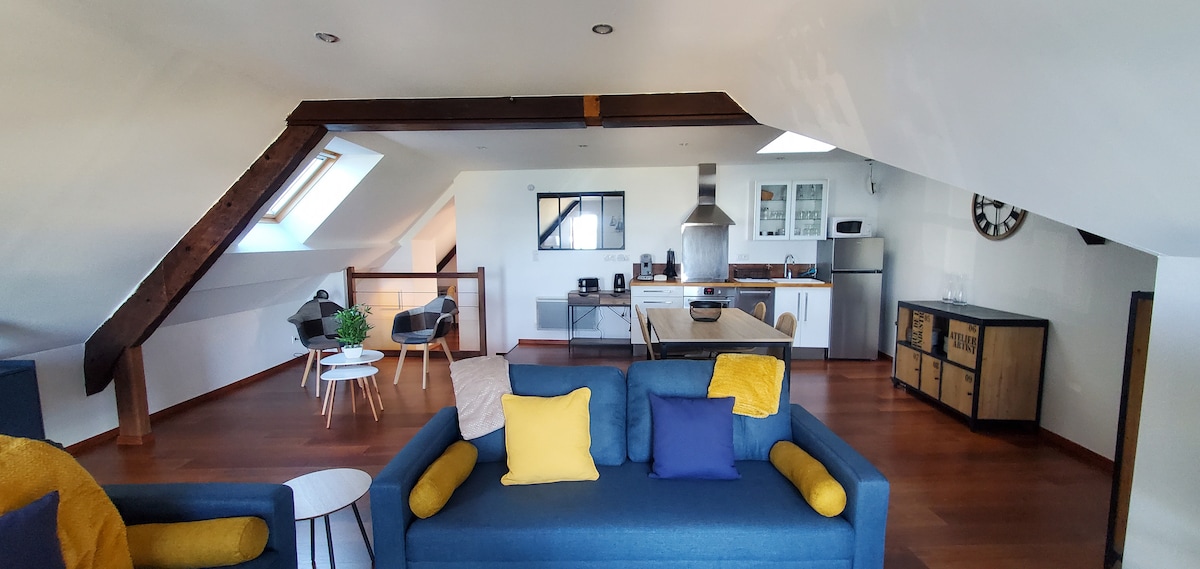 Magnífico apartamento frente al traict du Croisic en una casa antigua llena de encanto, fácil acceso (estación de tren TGV a 5 minutos a pie, y amplio aparcamiento gratuito a 2 minutos) Impresionantes vistas gracias a las 2 grandes ventanas y puerta ventana que da a un pequeño balcón (doble acristalamiento). Gran alojamiento (65 m2) Gran sala de estar con cocina integrada, dormitorio de 20 m2 con cama king size y sofá cama, escritorio independiente para trabajar en línea. wifi y televisión. Cuarto de baño con gran ducha. Muchos armarios.