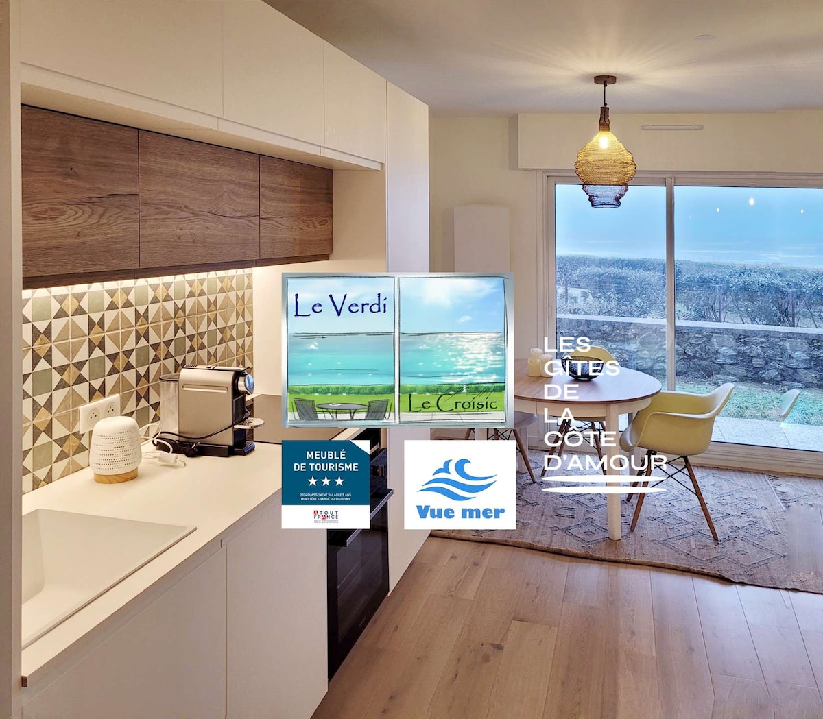 Alojamiento de turismo⭐️⭐️⭐️ Ubicación excepcional en el puerto de la península de Croisic magníficas vistas del Traict SOLO ADULTOS +16 años INCLUIDO: Toallas CAMA HECHA Limpieza al final de la estancia WI-FI FIBRA En el segundo piso de nuestra crepería «Les 3 Matelots» Amplio apartamento *** «Les Mouettes» Vistas al mar Renovado en 2022 2 personas 1 habitación Cama «queen size» NO HAY SALA DE BICICLETAS Se puede hacer todo a pie