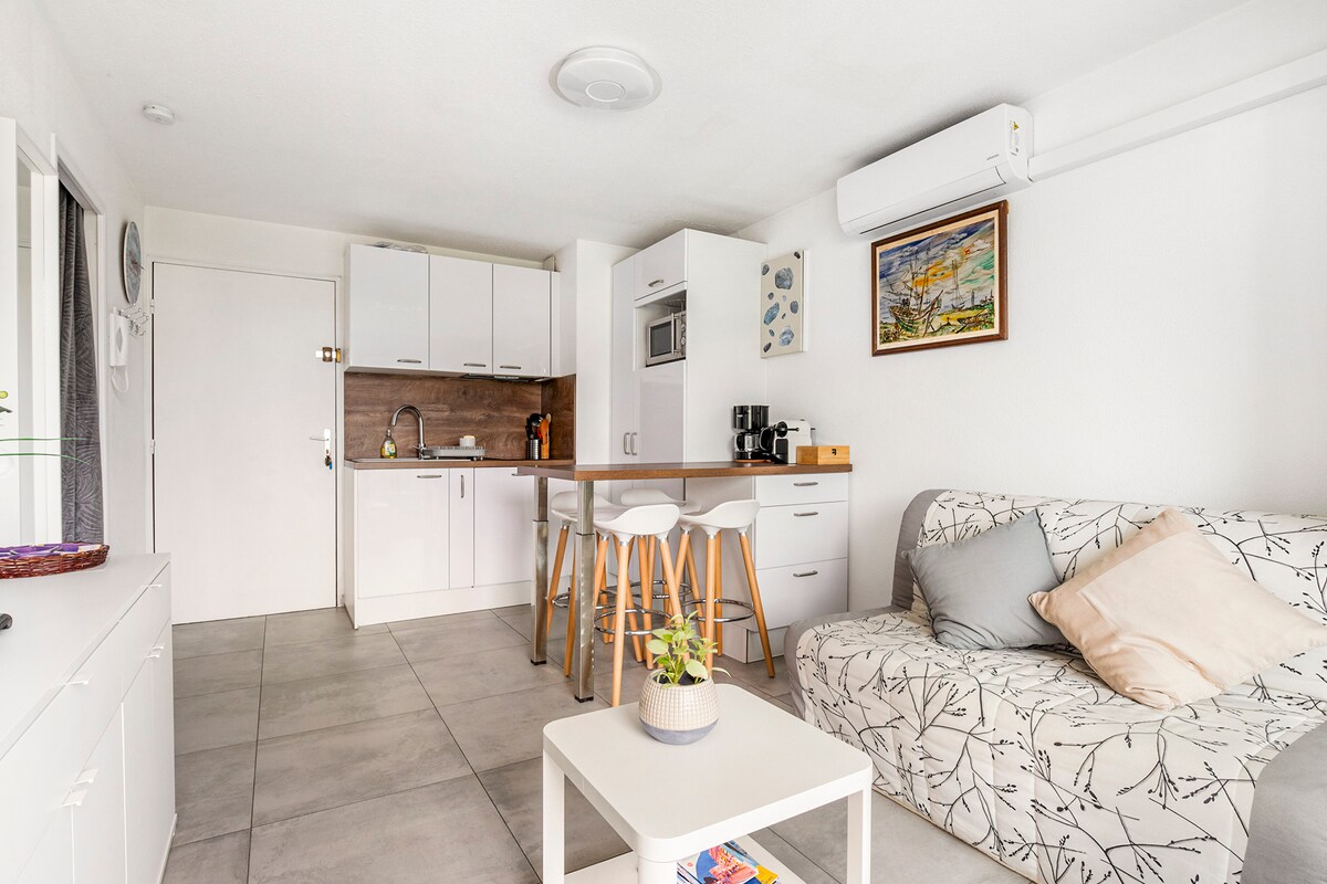 38 m² para ponerse cómodo y disfrutar de un momento de relajación en la última planta, donde las vistas son despejadas. Estará a m del paseo marítimo, a 200 m del centro y su bullicio, y hay una bolera que hará las delicias de los aficionados a los 20 Metres bolos. Acceso directo a "1 MNS" en la playa para darse un chapuzón a cualquier hora. Su habitación tiene una cama de 160 cm. Cama BB Cocina moderna y totalmente equipada Terraza de 6 m² Cuarto de baño y ducha de 140 cm