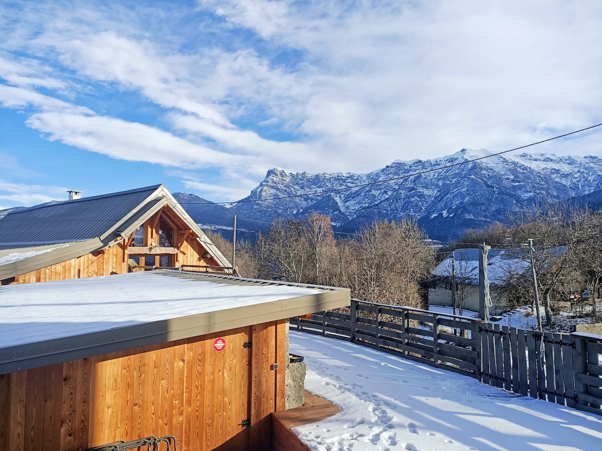 Located on the heights of the village of Réotier at 1100m above sea level. You will appreciate this 116m² wooden chalet for the view and comfort. It is perfect for families (with children). The chalet is in a very calm environment. You will have a breathtaking view of the Durance valley, the Queyras mountains with a thousand hikes, the ski resorts of Vars and Risoul, the Vauban stronghold of Mont-Dauphin (listed as World Heritage by UNESCO) and the village of Guillestre.