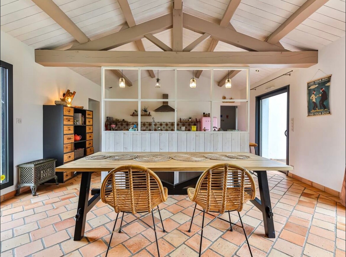 ¡Bienvenidos a la casa de Julie! Una estadía para recargar energías junto al mar, accesible en tren (a 1 hora de Nantes) y sin necesidad de coche en el lugar, para desconectar aún mejor… Le damos la bienvenida en la planta baja de una casa con carácter del siglo XVII, situada a 10 minutos a pie de todo: el océano, los mercados, las tiendas, los restaurantes y las terrazas… Piedras, madera, materiales naturales y colores cuidadosamente seleccionados le acompañarán para crear un ambiente acogedor a su gusto.