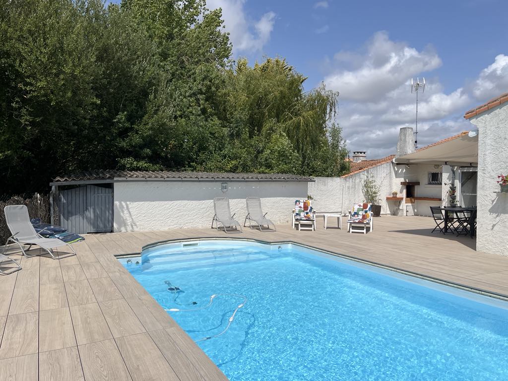 Casa de 190 m2, en el pantano de Vendée La casa consta de 4 habitaciones: 1 .ª - cama de 160 x 200 con terraza 2 .ª - cama de 160 x 200 y un sofá convertible de 140 x 200 Tercera - 2 camas de 80x200 y una cama nido (es decir, 4 camas) 4º - 2 camas de 80x200 y una cama nido (es decir, 4 camas) Amplia sala de estar con estufa de leña, mesa grande Salón Tv, Wifi Cocina amueblada y equipada 2 baños dobles con duchas, 3 inodoros Hangar equipado con mesa de ping pong, futbolín, dardos, cancha de petanca