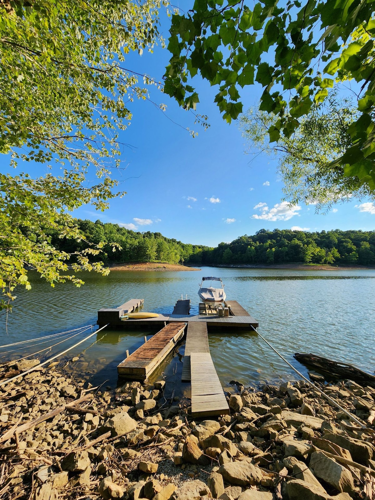 Acogedora casa de 3 dormitorios y 2 baños ubicada a orillas del río Rough con poco tráfico de barcos. Una rampa comunitaria para botes está convenientemente ubicada detrás de la casa y el lago principal está a solo 15 minutos en bote. A poca distancia en coche de las playas del parque estatal Rough River. Muchas zonas para dormir con dormitorios King y Queen y una habitación con literas con 5 camas individuales. El garaje de gran tamaño almacenará un barco o kayaks durante tu visita. ¡Disfruta de un partido de tenis de mesa, piscina o acurrúcate junto a la chimenea! ¡Perfecto para pescar!