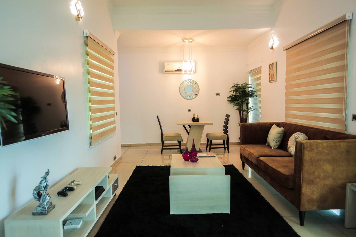 Trae a toda la familia a este gran lugar con un montón de espacio para divertirse. Un lujoso apartamento corto de 2 dormitorios y 2 salas de estar situado en Lekki, Lagos, Nigeria. Netflix ✅ Wi-Fi gratis✅ Ps5 ✅ Salón/área de juegos✅ Luz las 24 horas✅ Plaza de estacionamiento.✅ Servicios de limpieza✅ Cocina totalmente equipada. ✅ Bar de vinos✅ Bata de baño✅ y mucho más