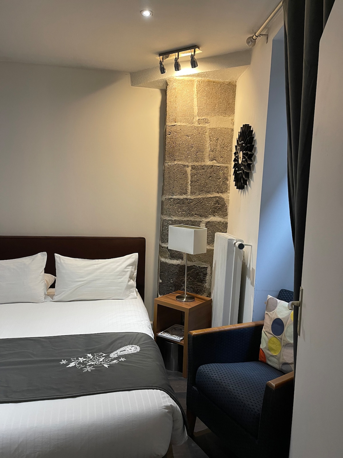 Apartamento entero de 54 m² + terraza en la azotea en el 4.º piso totalmente reformado, en un hermoso edificio histórico de lujo renovado con ascensor y acceso seguro, situado en una gran calle peatonal del distrito histórico a 200 metros de la Place de Jaude (numerosos servicios y restaurantes). Muy luminoso. Salón y terraza panorámica con vistas a la Catedral y la Plaza de Jaude. Habitación con vistas a Puy de Dôme cuando hace buen tiempo. Tranvía y taxi a 150 metros. Aparcamiento público a 75 metros.