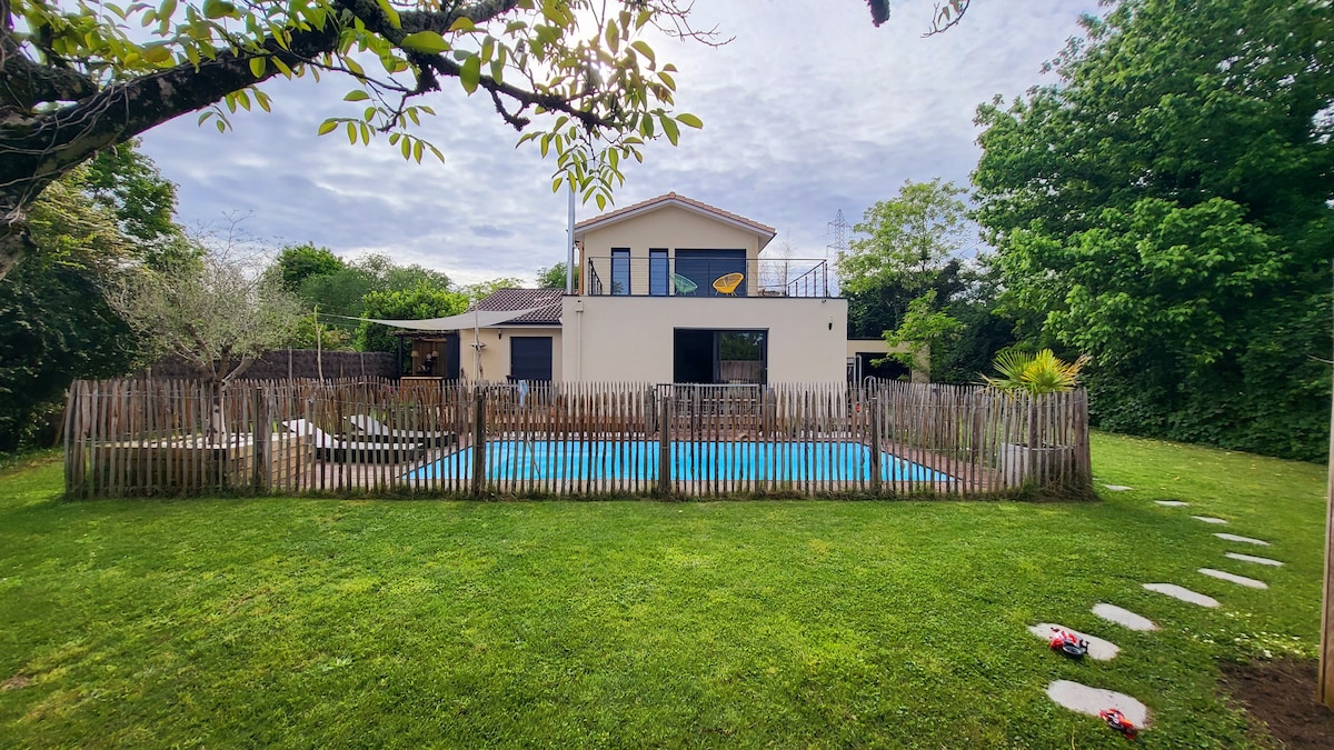 Muy agradable casa luminosa con gran jardín para 4 personas: una familia o 2 parejas … Pie en tierra para visitar la zona: centro de Burdeos ( 30 min) St Emilion ( 1 h) , fuentes de Caudalie ( 10 min) … a 45 minutos de la cuenca: Arcachon , Dune du Pila , Cap ferret , Biscarrosse , Lacanau … La casa se encuentra a 2 minutos de un pequeño lago acondicionado como recorrido deportivo, de un centro ecuestre; en medio del bosque, viñedos, castillos vitícolas (visitas y degustaciones), pistas de ciclismo de montaña…