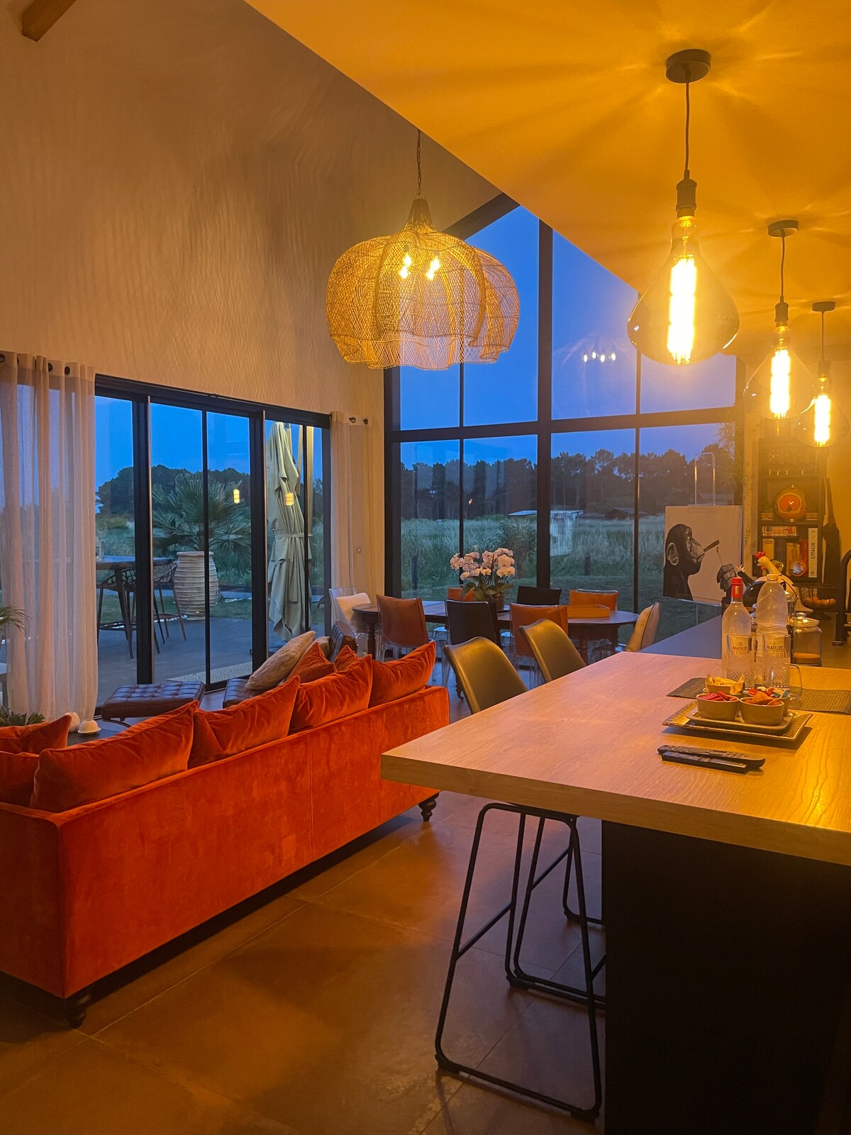 En el corazón del prestigioso viñedo de Pessac-Léognan, a dos pasos del Château Smith Haut Lafitte y de su maravilloso Spa Caudalie, esta elegante, espaciosa y luminosa casa ofrece un entorno tranquilo único. Su espacio habitable bajo techo de catedral con su magnífica vidriera crea una armonía excepcional entre el interior y el exterior. Un remanso de paz ideal. Ya sea que venga para un fin de semana romántico, una escapada con amigos o una estadía familiar, se irá renovado, con un solo deseo: volver