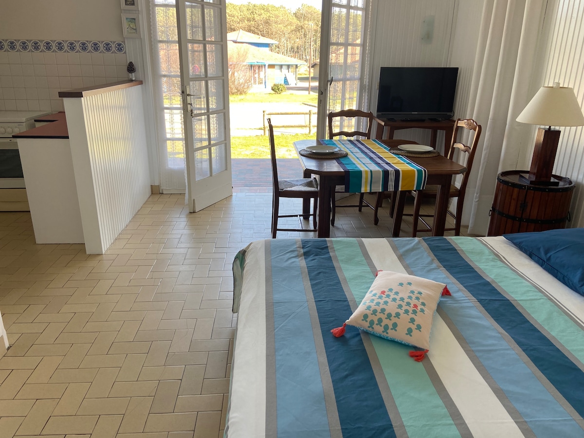 A 300 m del lago de Léon y a 7 km de la playa de Moliets et Maa; Casa 3 habitaciones (3 camas dobles, 1 cama individual), baño con ducha y bañera, inodoro, trastero, sala de estar con cocina abierta. Aire acondicionado. Terraza idealmente expuesta con ducha al aire libre. Piscina climatizada y segura de junio a septiembre Todas las comodidades y actividades en las cercanías: Tiendas, mercado de verano, alquiler de bicicletas, restaurantes, escuela de surf, pescadería, minigolf, recorrido peatonal en zona natural en el lago…