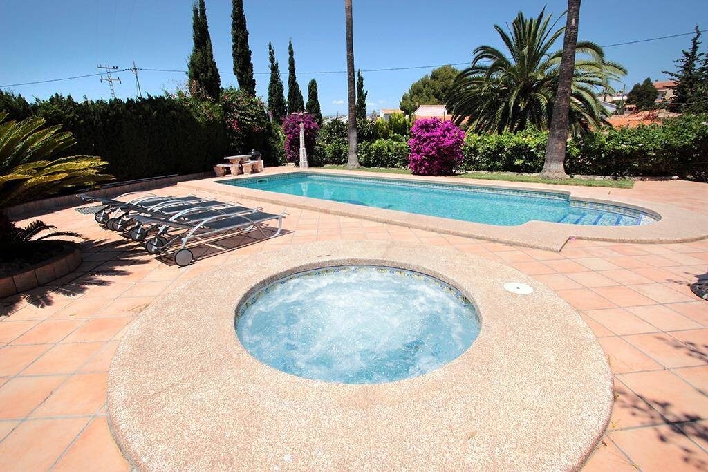 Our enchanting villa, with its incredible garden, swiming pool and barbecue, is at 15 mns walk from beaches and a watersports club, Les Basetes, where you will be able to realize nautical activities such as windsurf, catamaran, diving, etc. The marvelous sea view, and to the Peñon de Ifach, from the house, will make your holidays just unforgivable!!