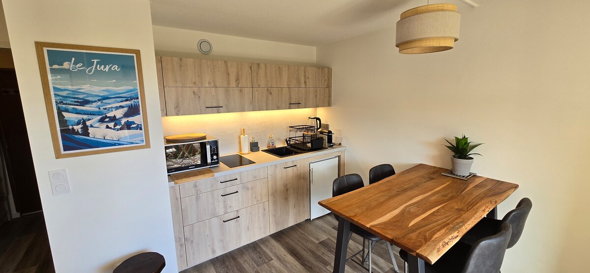 Su nido acogedor en el corazón del Jura Ubicado en una residencia tranquila, nueva con ascensor, a pocos minutos de la frontera suiza, este apartamento para 2 a 4 personas le ofrece un acceso privilegiado a los encantos de la región y sus múltiples actividades Este apartamento tiene todas las comodidades necesarias. Acceso a las pistas de esquí a 5 minutos, transporte gratuito Se proporcionan sábanas y toallas. Llegada autónoma. Lugar de estacionamiento privado Limpieza incluida No se admiten mascotas No fumadores