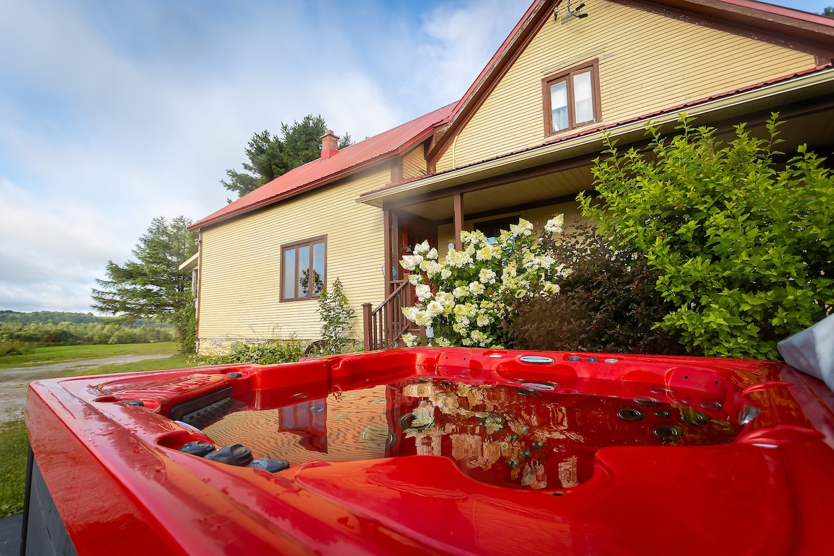 CITQ: 308387 Tiny house avec un look country. Magnifique chalet près du Mont Ham. Grand espace de vie extérieure avec spa, ainsi que toutes les commodités nécessaires à l'intérieur. Les soirs d'été, vous pouvez entendre les cloches des vaches et admirer les étoiles. Un petit ruisseau avec bassin naturel est accessible pour se rafraîchir. -Poêle à bois intérieur et extérieur. -Bois de chauffage à volonté sur place mais bois d'allumage à apporter. -1 lit queen, 2 lits simples et un divan lit