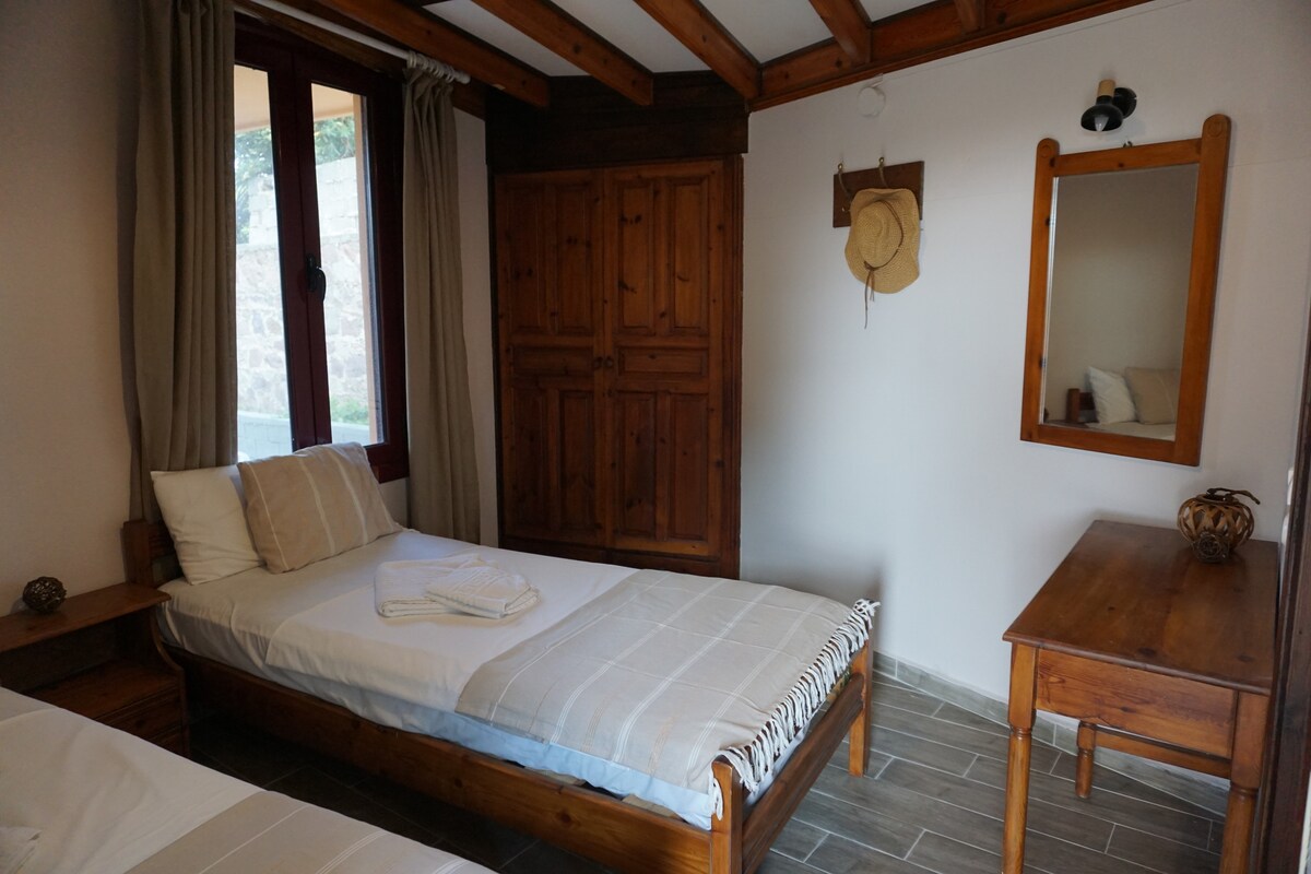 Habitación privada con terraza y vistas al mar en la isla de Cunda