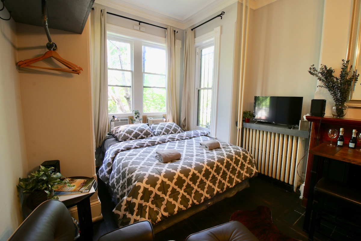 King Bed Studio, Free Parking, Walk Everywhere