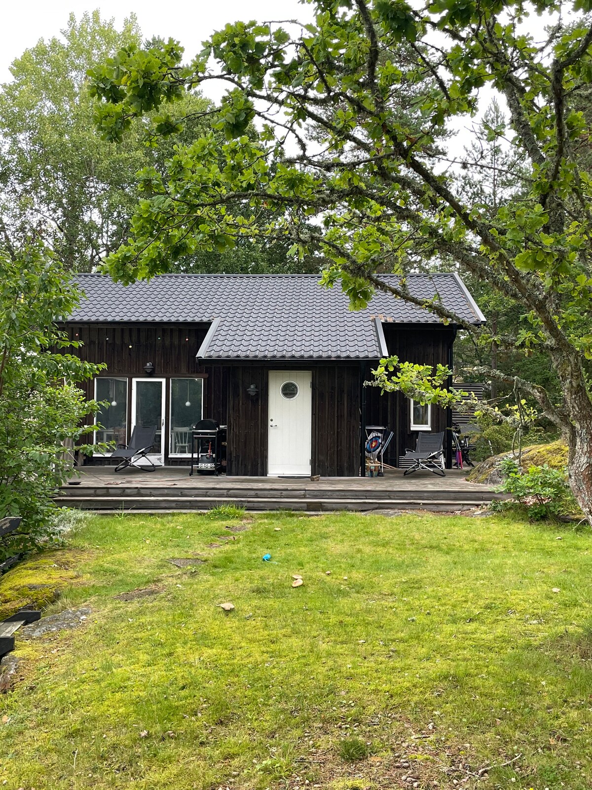 Relájate con toda la familia en esta tranquila casa entre los doseles cerca del maravilloso archipiélago del lago Vänern. La cabaña tiene un plano de piso abierto con loft para dormir y un dormitorio y se encuentra en Kållandsö fuera de Lidköping con acceso a una playa de arena, baño de muelle/acantilado y con el bosque como el vecino más cercano. Rutas de senderismo en la reserva natural a tiro de piedra de la casa. Cerca del campo de golf, el castillo de Läckö y los Spikens Fiskeläge. ¡Te damos la bienvenida!