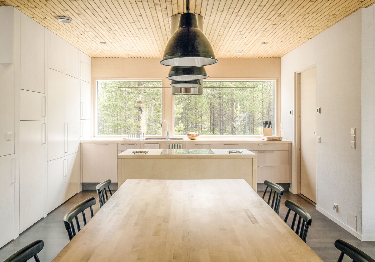 Nueva casa cerca del lago. Lugar tranquilo. A 25 minutos de Oulu. Parada de autobús a 500 m. Cocina, sala de estar, 2 dormitorios, sauna, baño. Posibilidad de esquiar o caminar en el lago o en el bosque. Máximo 4 personas. Jacuzzi +50e/día (límite de -20c). Mínimo 2 días. Posibilidad de recogida en Oulu o Kiiminki. 4 juegos de esquís de fondo y raquetas de nieve de uso gratuito. Puedo organizar trineos de husky, caza de Aurora y otras actividades de invierno. Ei juhlia, max 4 vierasta. Oulu a 25 min Rovaniemi 2,5 h