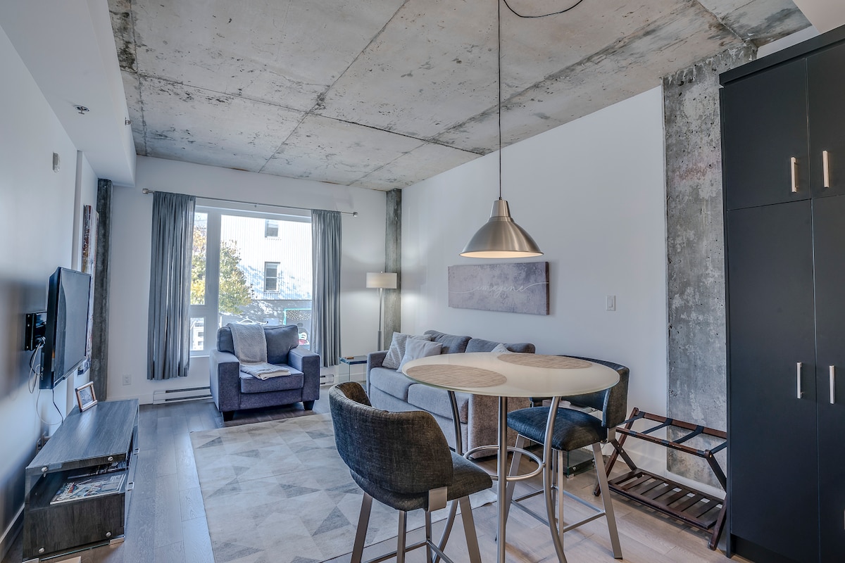 A 5 minutos del casco antiguo de Quebec y a 2 minutos de la estación de tren, nuevo apartamento con: - 1 cama tamaño king - 1 cama queen size - 1 corralito para bebés Muy práctico e ideal para familias con niños pequeños (equipamiento para bebés/niños disponible) incluido: - Wifi rápido ilimitado. - Espacio de oficina (dormitorio) - 2 televisores inteligentes - Cocina totalmente equipada. - Baño con lavadora-secadora. En el edificio: - Gimnasio. - piscina* - Barbacoa, chimenea y comedor en la azotea. Muchos estacionamientos, restaurantes, cafeterías y actividades cercanas.