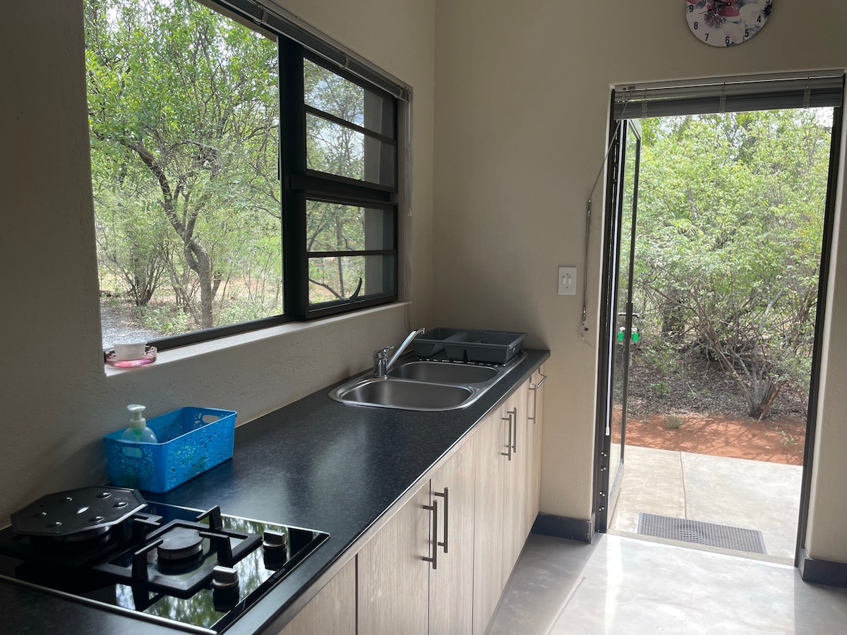 African Olive es un moderno dormitorio, 1 baño con ducha y una cocina totalmente independiente. Jacuzzi de agua fría. Situado en la encantadora finca de vida silvestre Hoedspruit.