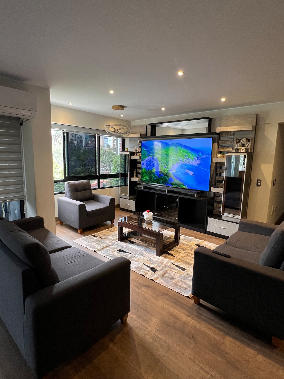 Lindo departamento ideal para relajarse, con amplia terraza, ubicado a media cuadra de Javier Prado, dos cuadras de la Vía Expresa y frente al Centro Comercial Santa Catalina el cual cuenta con cine, gimnasio, restaurantes entre otros. Además, su ubicación es punto céntrico para moverse a diferentes distritos Cuenta con: ✔️Netflix ✔️Wifi ✔️TV de55’’en el cuarto ✔️TV de 50’’en la sala ✔️Aire acondicionado split( solo frio) El DEPARTAMENTO ES PARA DOS PERSONAS, NO SE PERMITE EL INGRESO DE VISITAS