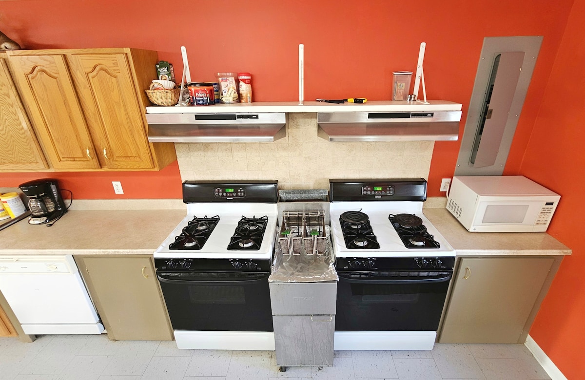 La casa de ensueño de nuestra familia encaramada en lo alto de una colina con vistas a los hermosos fondos del río es tu escape del ajetreo y el bullicio de la vida cotidiana. Situado en el centro de 200 acres para tu exploración, este alojamiento es ideal para la próxima escapada de tu familia. Vuelve a conectar con la naturaleza en una caminata por la naturaleza, coloca algunas líneas en uno de varios estanques o cuenta historias alrededor de una fogata. ¡Disfruta de todo esto mientras te hospedas en un alojamiento que incluye techos de 30 pies, una escalera de caracol, un poste de fuego y una litera de 3 pisos!