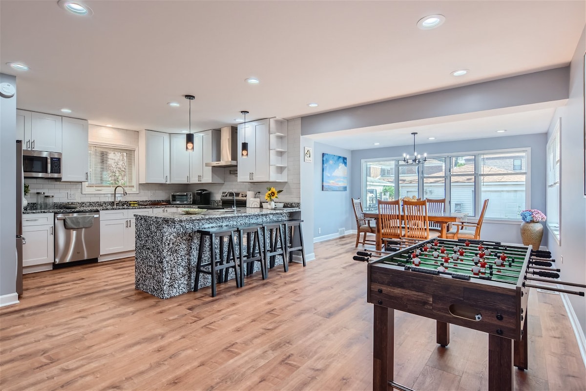 Cerca de los restaurantes y la vida nocturna de Chicago, ¡pero enclavado en la naturaleza! Esta imprenta de 1937 se encuentra entre el río Chicago y las reservas forestales, con senderos y paseos fluviales, a 3 millas de la playa, cerca de Lake Shore Drive y 90/94, cerca de Lincoln Square, Andersonville y cascadas estacionalesporádicas, con brunch cerca. Esta casa de 2 dormitorios y 2 baños tiene una planta. Cocina de chef de 5 estrellas. Proyector HD de 9' x 15', camas cómodas, cuarto de ducha con cabezal de ducha doble, cerca de la naturaleza. Relájate en nuestro patio privado con muebles brillantes.