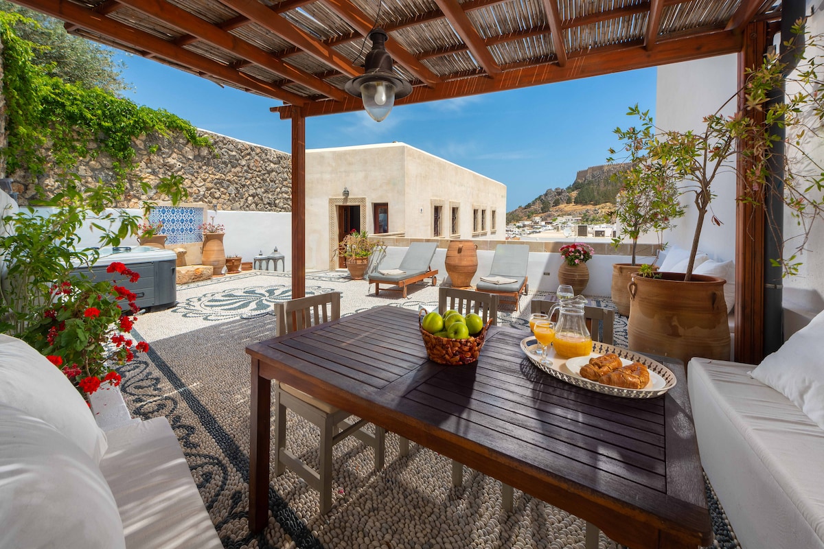 Villa Lindos Allure con vistas a la Acrópolis y jacuzzi