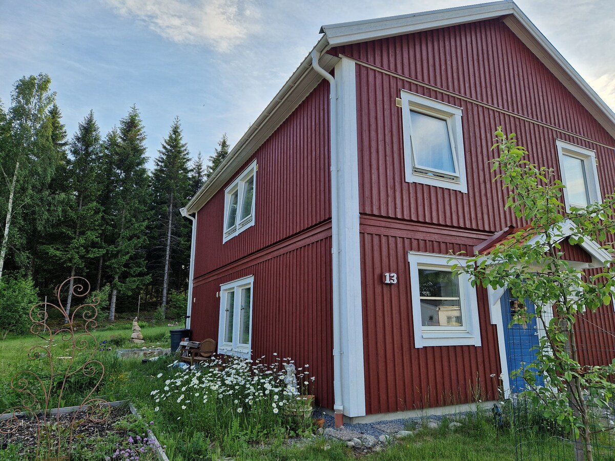 ¡Te damos la bienvenida a Sörgården y a nuestra granja de caballos! Disfruta de las cuatro estaciones desde el último piso, con una vista impresionante del lago Bottensjön al oeste. Esta moderna casa de 2022 ofrece 45 metros cuadrados de espacio. El apartamento comparte el edificio con otras dos unidades. Perfecto para 3 adultos o 2 adultos y 2 niños. Una cama es un sofá cama, que puede no adaptarse a dos adultos. No dudes en reservar nuestra sauna flotante en el lago: 500 SEK por sesión. ¡Relájate y disfruta de la tranquilidad única junto al agua!