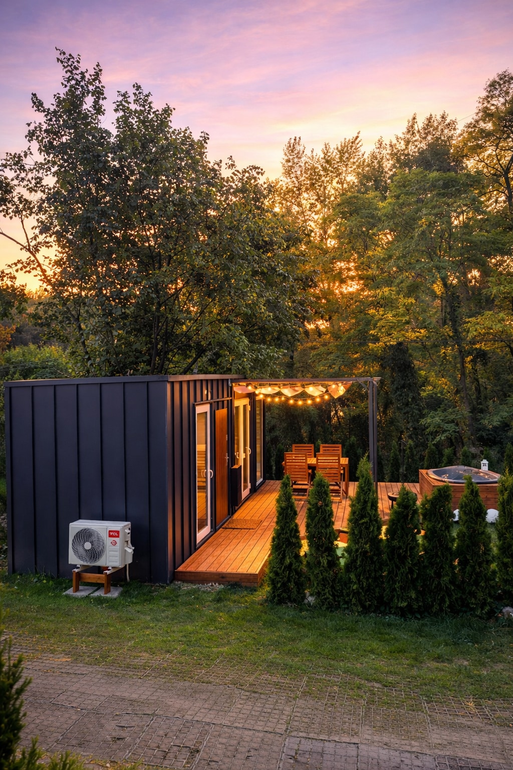 Domek z balią nad Wisłą – idealny na spokojny wyjazd we dwoje lub reset w naturze. Do dyspozycji gości jest prywatny taras z pergolą, drewnianym stołem i leżakami, a także wbudowana balia, przygotowywana na życzenie – idealna na wieczorny odpoczynek przy świecach i lampkach wina. Domek otacza zielony ogródek z miejscem na ognisko i grill, dzięki czemu można w pełni poczuć klimat wypoczynku nad Wisłą. To świetne miejsce zarówno na romantyczny wyjazd, jak i spokojny reset z dala od miasta.