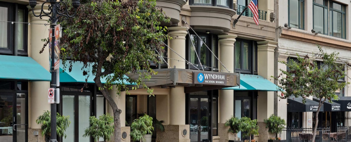 Este centro vacacional está justo al lado de la Quinta Avenida, con vistas al famoso Gaslamp Quarter. Eso significa que te encontrarás a pocos pasos de las mejores tiendas, restaurantes, galerías de arte, cafeterías y vida nocturna que ofrece San Diego. Y al final del día, los alojamientos elegantes te dan la bienvenida al regresar de tus aventuras. Ubicado en 911 Fifth Avenue San Diego, CA 92101.