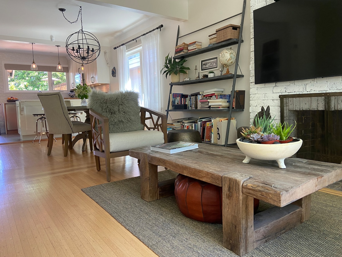 Suite privada céntrica, renovada, en la planta principal de una hermosa casa, a pocos pasos de los servicios de Main St. y con fácil acceso al centro de la ciudad. Disfruta de un dormitorio y un sofá cama, electrodomésticos de acero inoxidable en una cocina totalmente equipada y la calidez de la chimenea de gas, aire acondicionado portátil y purificador de aire. Los suelos de madera se extienden hasta dos terrazas, una cubierta por un patio trasero ajardinado. Dentro de la lavandería de la suite, este lugar promete una estancia inolvidable en medio de la vida urbana. Aparcamiento gratuito en la calle. No se admiten mascotas, no apto para niños pequeños.