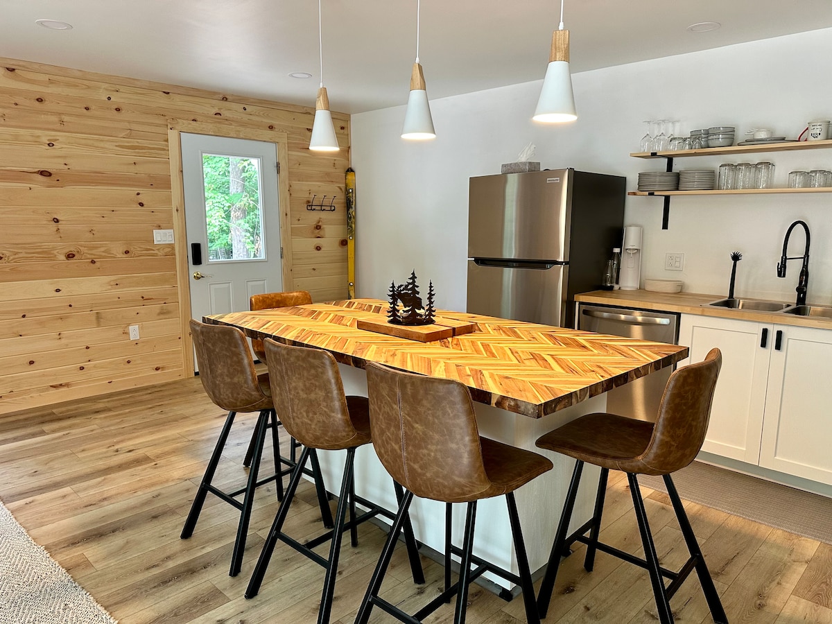 El diseño moderno en un entorno único crea una experiencia especial en Adirondack sin multitudes. Nueva construcción en 3 niveles con luz natural en todas partes. Aislado, pero lleno de luz y amplias vistas de las montañas, el huerto Legacy y el bosque. Dormitorio principal con baño completo, espacio de trabajo. La cocina totalmente equipada y la bañera de hidromasaje de cedro en la terraza (¡disponible todo el año!) hacen del Chalet un lugar muy especial. Excelente acceso a todas las actividades de invierno al aire libre.