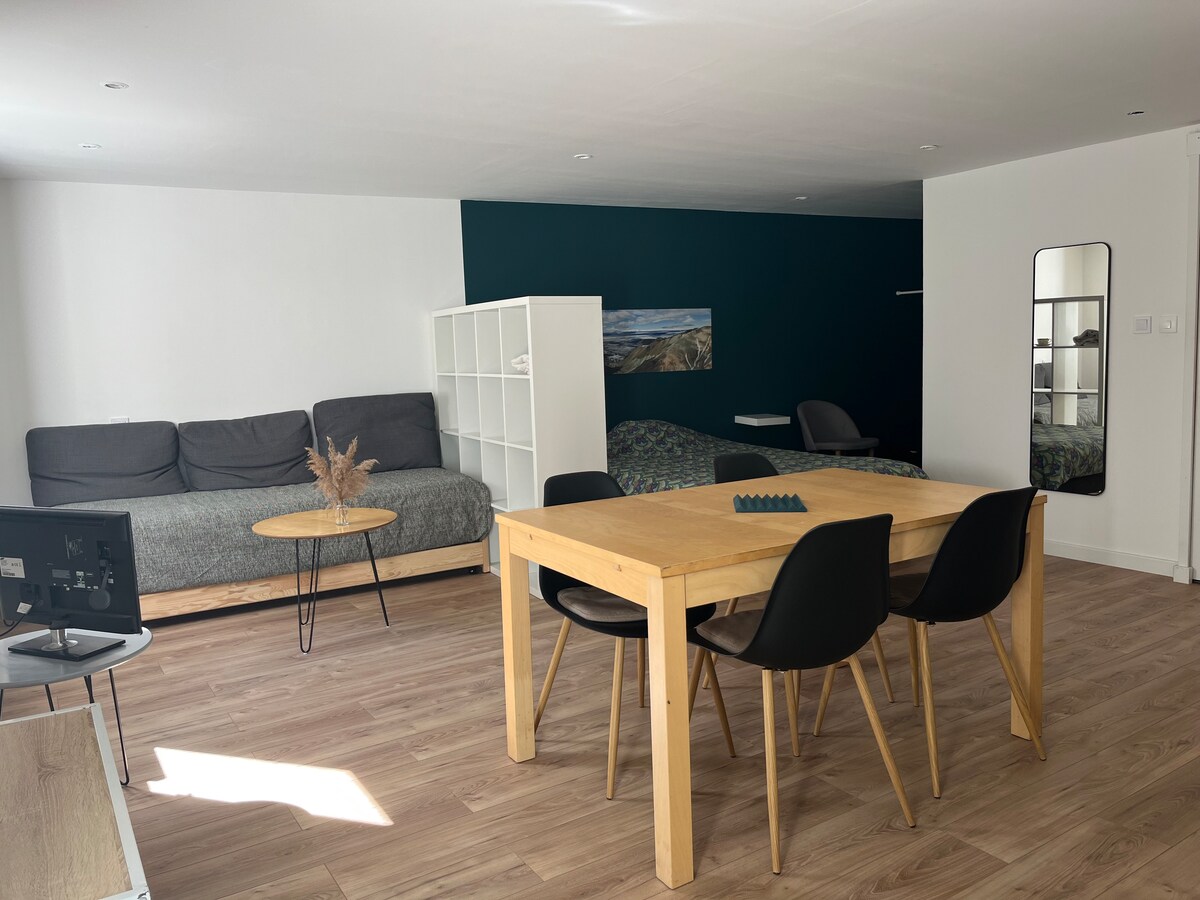 Disfrute de un elegante estudio, totalmente independiente, muy cerca de la estación de tren Valence Centre. El 18 de febrero de 2023, Elisabeth escribió su comentario: «¡El alojamiento ofrecido por Annick y Jo es simplemente una joya! Uno se siente muy bien. No hay duda de que han tenido el deseo de proporcionar el máximo confort a sus huéspedes. El alojamiento es muy funcional y coincide con el anuncio. Además, su proximidad a la estación de tren y al centro de la ciudad es una ventaja adicional. ¡Gracias!».