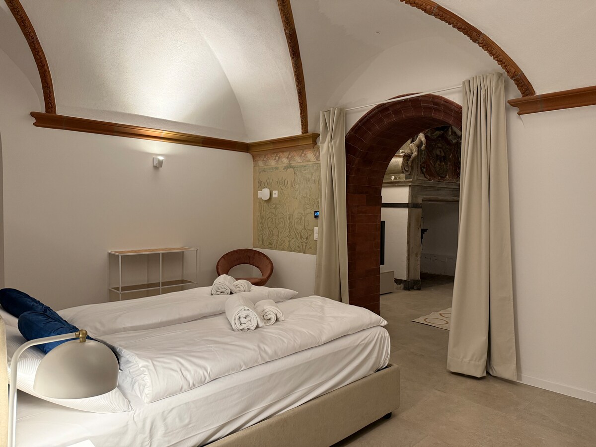 Nuestro apartamento en Casa Aurelia forma parte de una residencia vacacional bien cuidada en una exuberante propiedad plantada de aproximadamente 16 000 metros cuadrados en la ladera. Dado que está en la planta baja, te sientas en la terraza en medio del verde, justo entre palmeras y arbustos en flor. Detrás de los acogedores arcos circulares, puedes disfrutar del panorama del lago y la montaña en casi cualquier clima. En la gran piscina debajo del departamento hay tumbonas y sombrillas gratuitas.