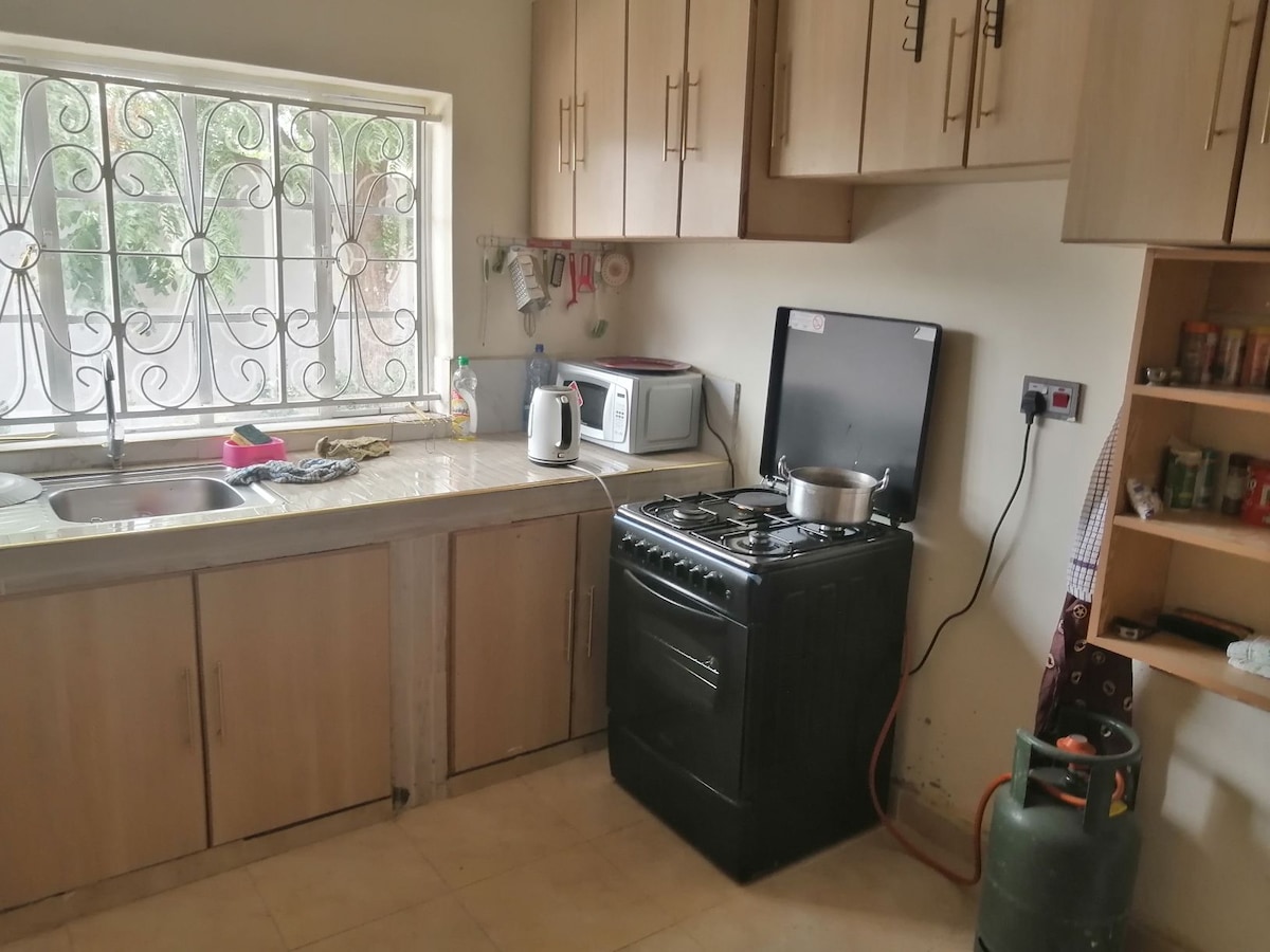 Un lugar tranquilo y humilde para relajarse y terminar. Hay wifi gratuito, amplio estacionamiento,buena autoridad, agua corriente disponible, experimentamos tiro de agua durante meses atrás, sin embargo, eso se resolvió de forma permanente. El alojamiento no está lejos del CBD de la ciudad, es accesible a pie(50 minutos a pie) en moto(8 minutos)que cuesta solo 100 Ksh, y en taxi es Ksh 500. tenemos un grupo para socializar a 500 METROS de distancia y dos hoteles de 5 estrellas con piscina para refrescarse a menos de 1 KM de distancia. Bienvenidos a todos.