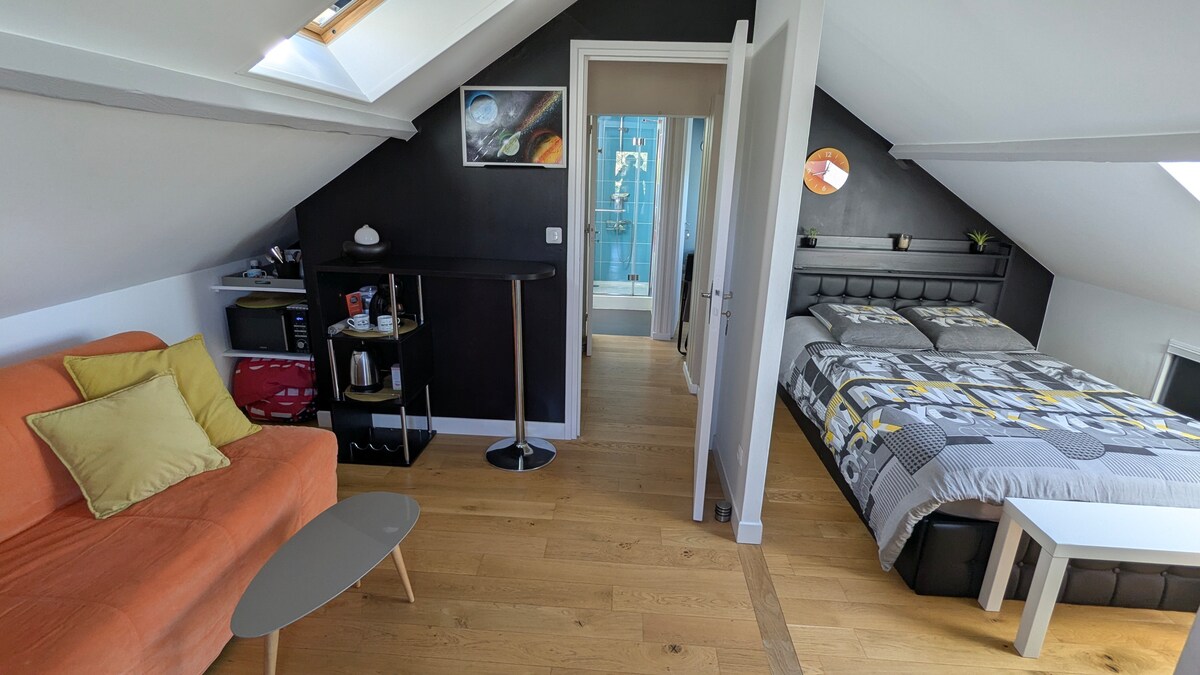 Bienvenido a Ô petit Noras, en una zona tranquila, a 5 minutos de CO'Met al norte y a 5 minutos del CHRU Orléans al sur. El encanto y el ambiente cálido de esta casa te seducirán desde el momento de tu llegada. El salón, con su gran sofá, será un lugar ideal para relajarse. La cocina, equipada, le permitirá preparar deliciosas comidas. La habitación, con una cama «queensize», te ofrecerá un sueño reparador. El baño cuenta con ducha a ras de suelo y bañera. ¡Hasta pronto!
