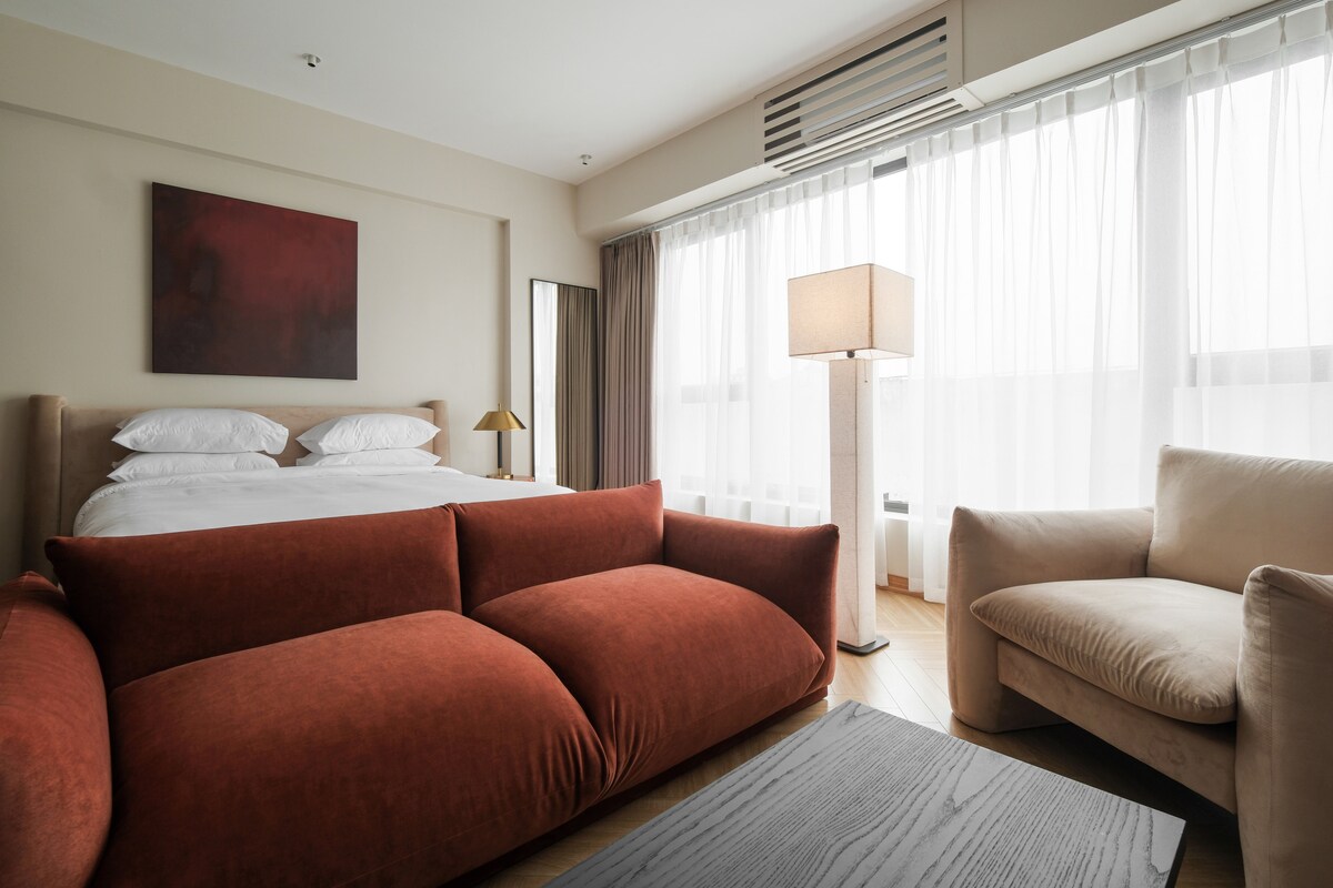 1BR Panorámica japonesa con vista al lago | Sauna y bañera privadas