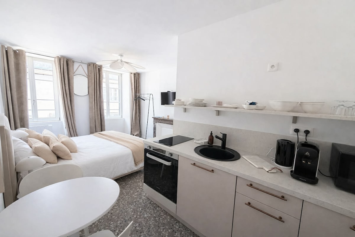 La casa de campo del jueves le ofrece alojamiento en sus estudios en un pequeño edificio totalmente renovado en el corazón del centro de la ciudad de Alençon. Estudio Sarrazine N.°5, situado en una segunda planta que consta de un baño con ducha y cocina equipada. Ideal para viajes de negocios o para descubrir nuestra hermosa región.