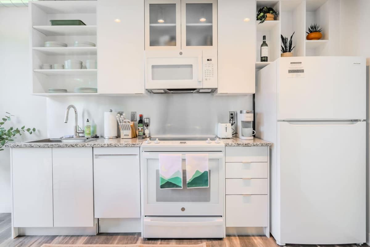 You will enjoy a stylish experience at this centrally-located suite. Free parking lot behind the building! Keyless entry. Luggage drop-off available (please request code). Lightning fast wifi. Free coffee & complimentary essentials in equipped kitchen. Body Wash / Shampoo / Conditioner are complimentary! Paid laundry available in common area hallway. Laundry pods complimentary. Queen bed sleeps 2. Pack'n Play or Roll Away Bed Available on request for fee.
