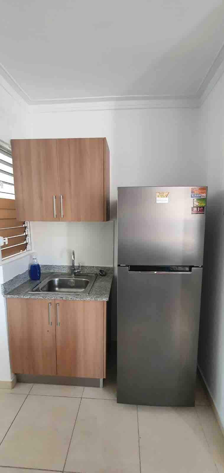 Apartamento acogedor, en un 3er piso, dentro encontrarás todo lo necesario para una estadía agradable, cocina equipada, área de lavado, 2 habitaciones con cama doble, habitación principal con aire acondicionado, segunda habitación con abanico, un baño. En zonas aledañas encontrarás supermercados, centros comerciales y a unos minutos la Embajada Americana y el Aeropuerto la Isabela. El agua tiene y contamos con tinaco interno que abastece