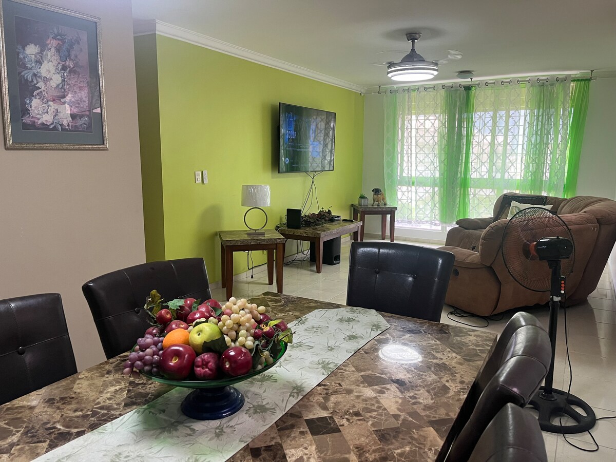 Disfruta de este PH moderno en la A. República de Colombia, a solo 10 minutos de la Embajada Americana, centros comerciales, supermercados y restaurantes. 3 habitaciones, estar familiar con sofá cama y TV, terraza al aire libre con BBQ. Finamente amueblado, con cocina equipada y decoración elegante. El residencial ofrece áreas sociales y deportivas. Ideal para familias o grupos de 6 personas, 145mts de espacios ubicados en un 4to nivel con escalera y una terraza en el 5to piso.